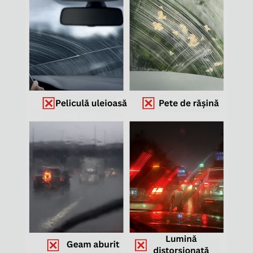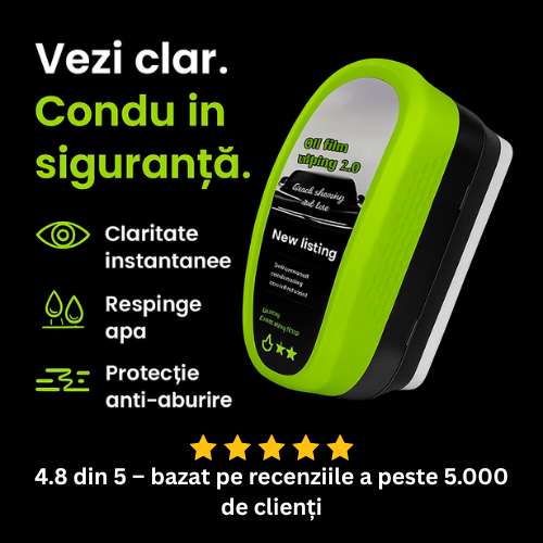 ⭐️⭐️⭐️⭐️⭐️ – 4.9/5 : „Mă bazez pe vizibilitate în fiecare zi. Produsul ăsta m-a surprins plăcut – șterge rapid și lasă geamul clar. Livrarea a fost promptă și pachetul bine ambalat.”